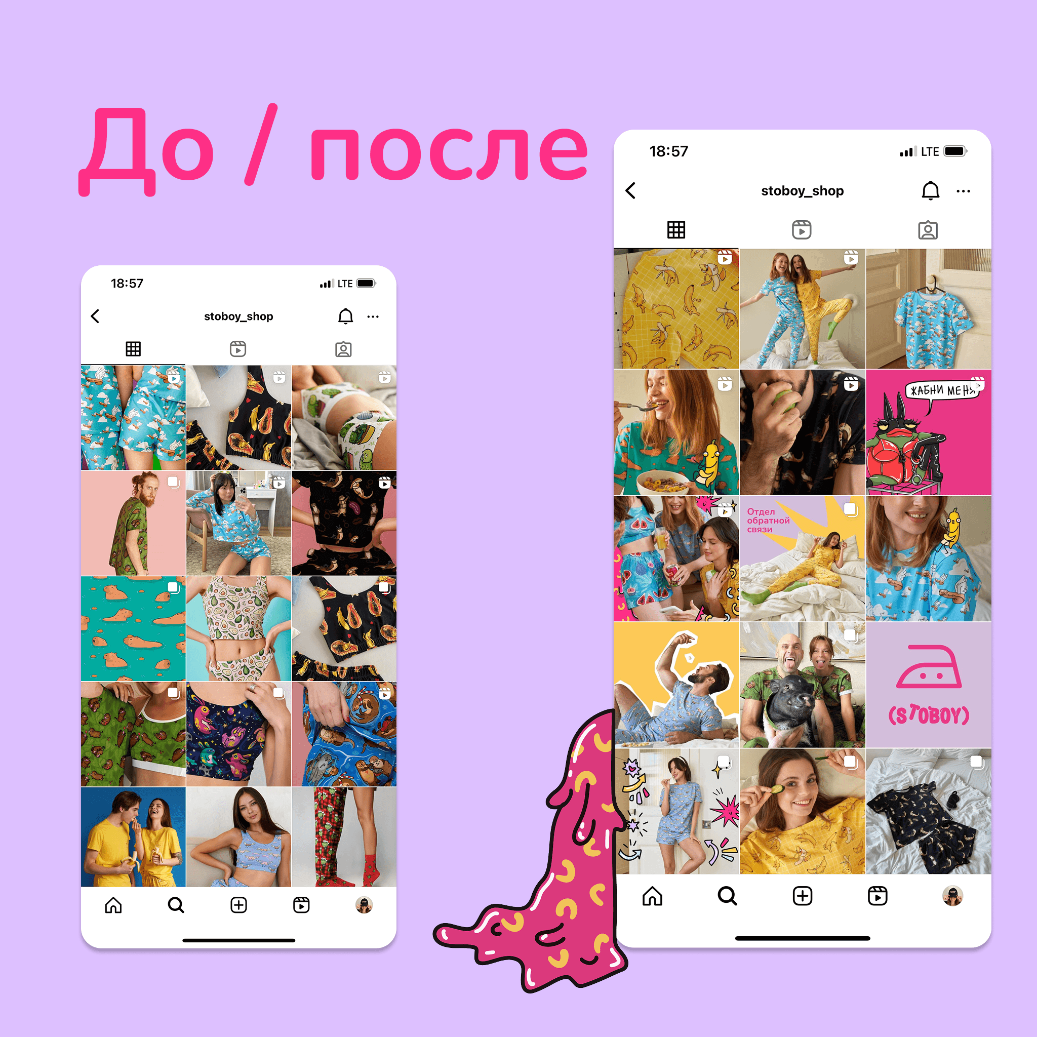 2023 год. Бренд stoboy делал забавные, немного пошлые и очень уютные пижамы с авторскими принтами. Команда Кирилла умела создавать уникальных персонажей и сюжеты, вдохновлённые мемами и жизненными шуточками, но бренд выглядел чуть устаревшим и… слишком скромным для своей же харизмы.